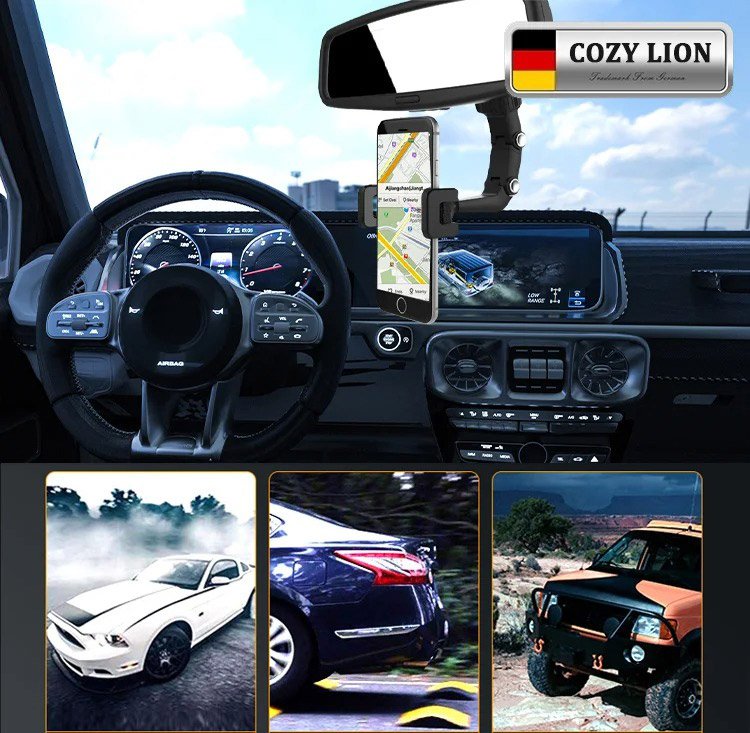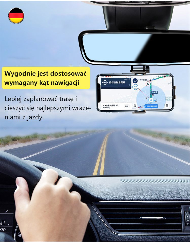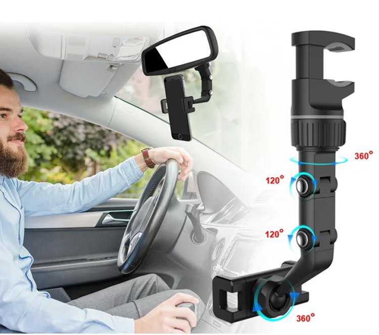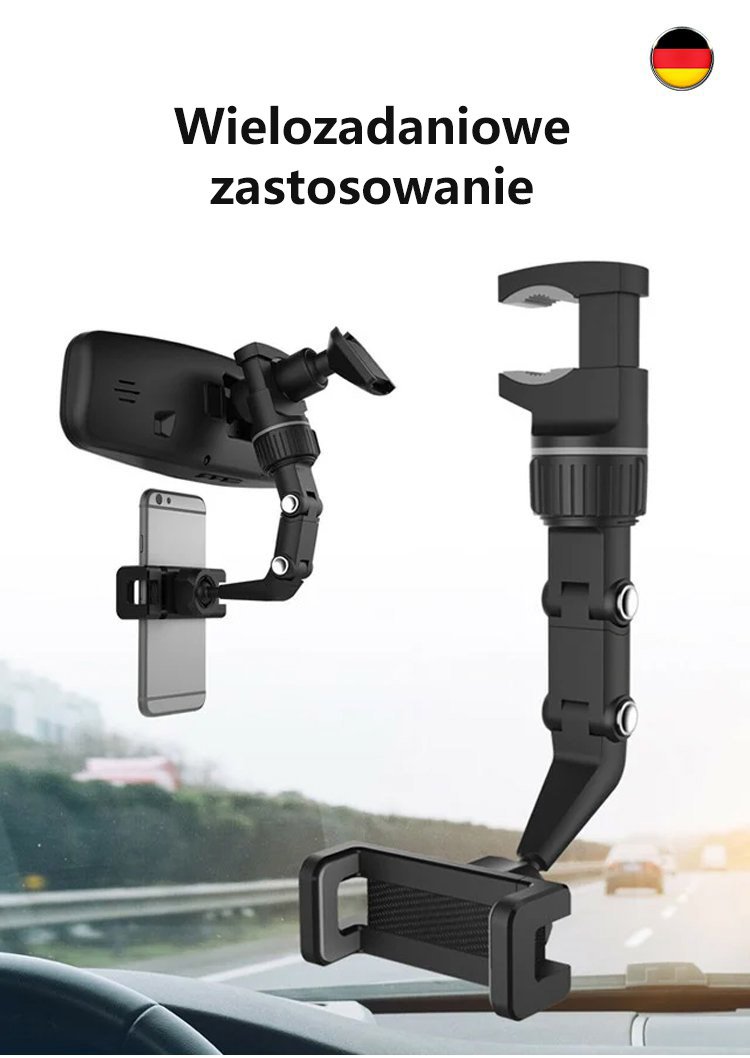 WIELOFUNKCYJNY UCHWYT NA TELEFON LUSTERKA WSTECZNEGO 360 °